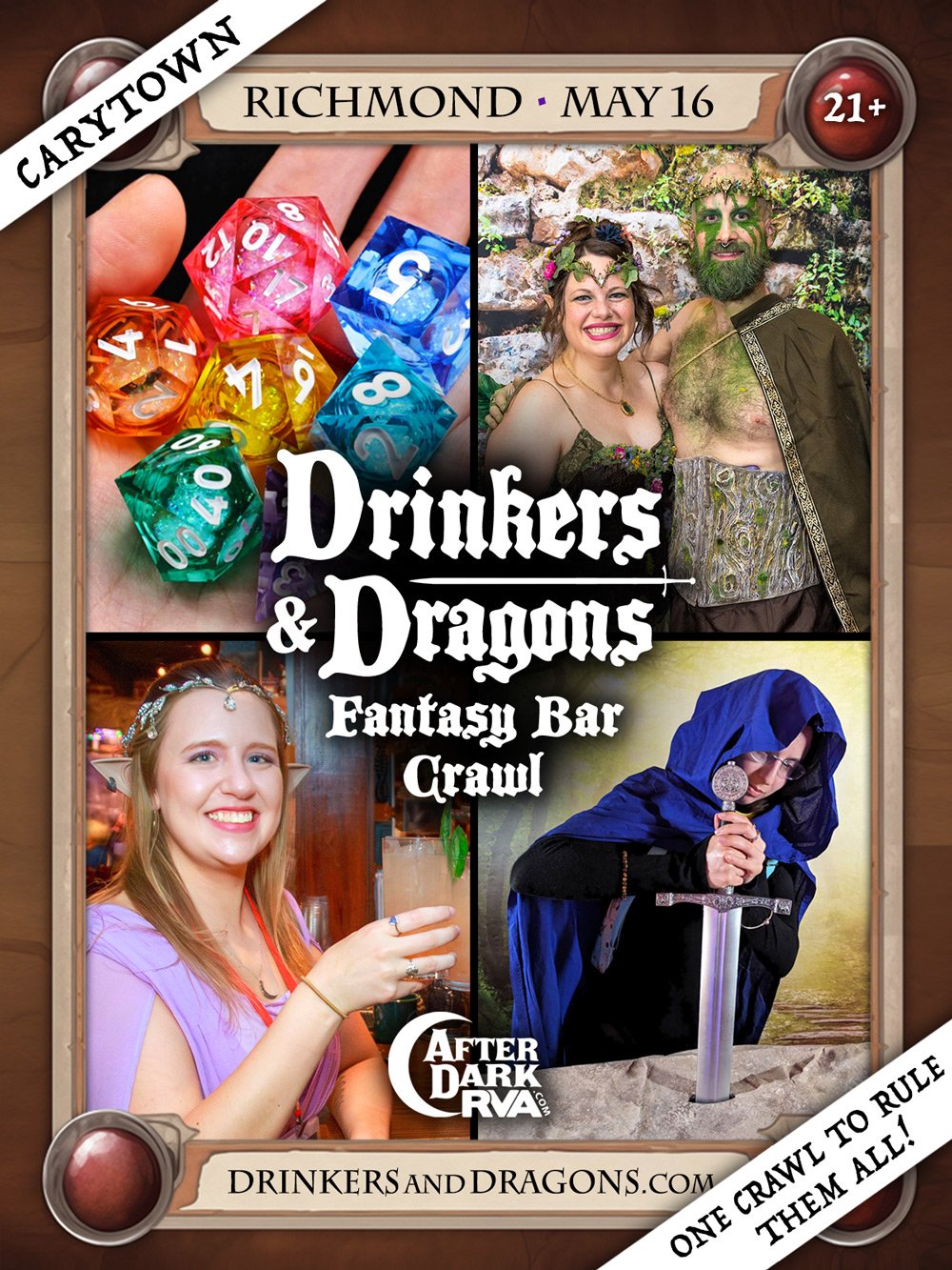 Magic and adventure return to Richmond’s Carytown on May 16th with the return of DRINKERS & DRAGONS Fantasy Bar Crawl - a great 21+ event for anyone who loves fantasy, cosplay, gaming and meeting like-minded adventurers! Hosted at New York Deli (Richmond’s oldest restaurant), attendees can expect a day full of quests, photos, themed food & drink specials, and the return of the social interactive “drinking dragons” collectible card game.