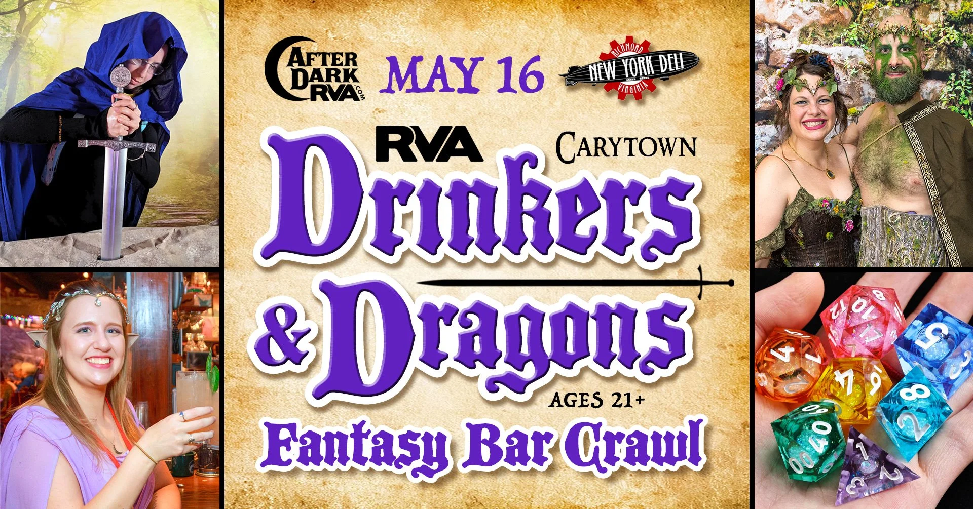 The cards will also be actively traded and collected during the May 16th Drinkers & Dragons Fantasy Bar Crawl in Carytown — a social game designed by After Dark RVA & Markster Con to get attendees mingling, engaging, and questing together while exploring various venues during a “bar crawl” themed event. Submitting artists also have the option of having their original “drinking dragon” art featured/sold at Richmond’s upcoming Fantasy-themed Art Show in July - to be hosted at Black Iris in downtown.