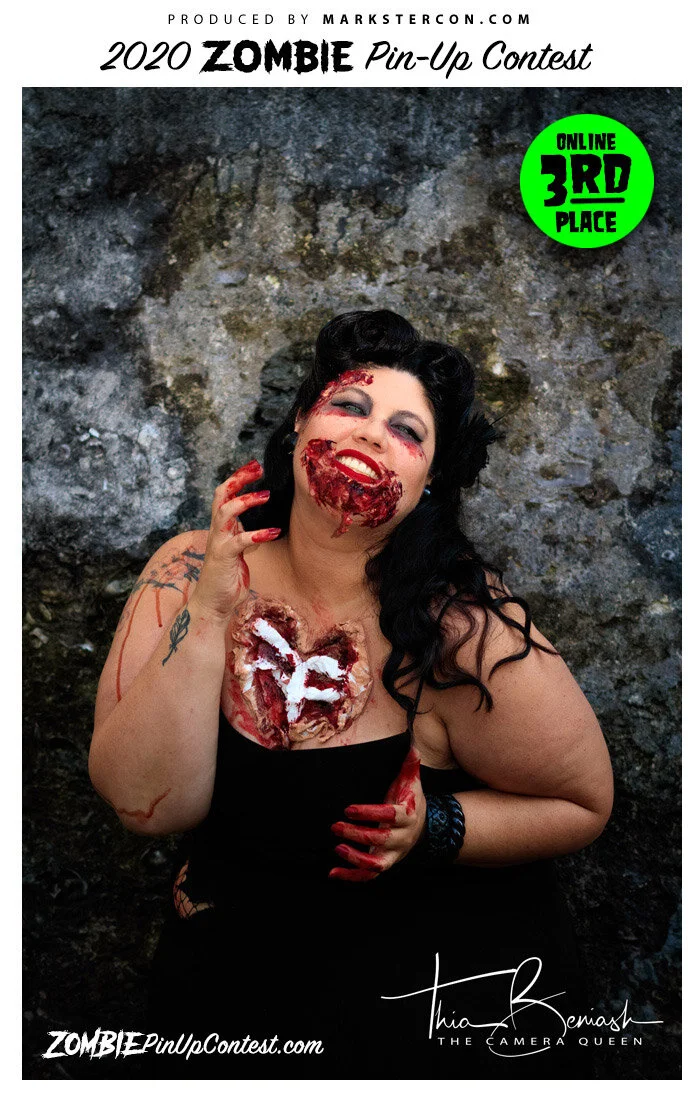 A massive, bloody THANK YOU to all of those who entered Markster Con’s 8th annual ZOMIE PIN-UP Contest. All entries were placed online for public viewing and voting (for Online Favorite); 4 judges were selected to vote/pick their favorite submission via JUDGES PICKS. Below you can see the Top 3 Winners of both the ONLINE FAVORITES and JUDGES PICKS - thank you to all who submitted for the 8th annual contest!